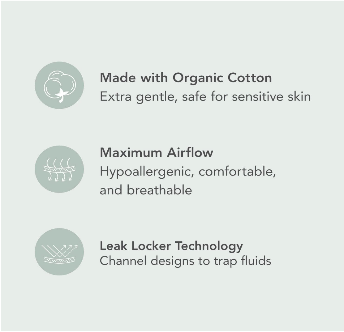 • MAXIMUM AIR FLOW – Made with 5 layers of moisture wicking cotton that alleviate unpleasant odors and irritation, all while providing high levels of period protection. Hypoallergenic, comfortable, and breathable.