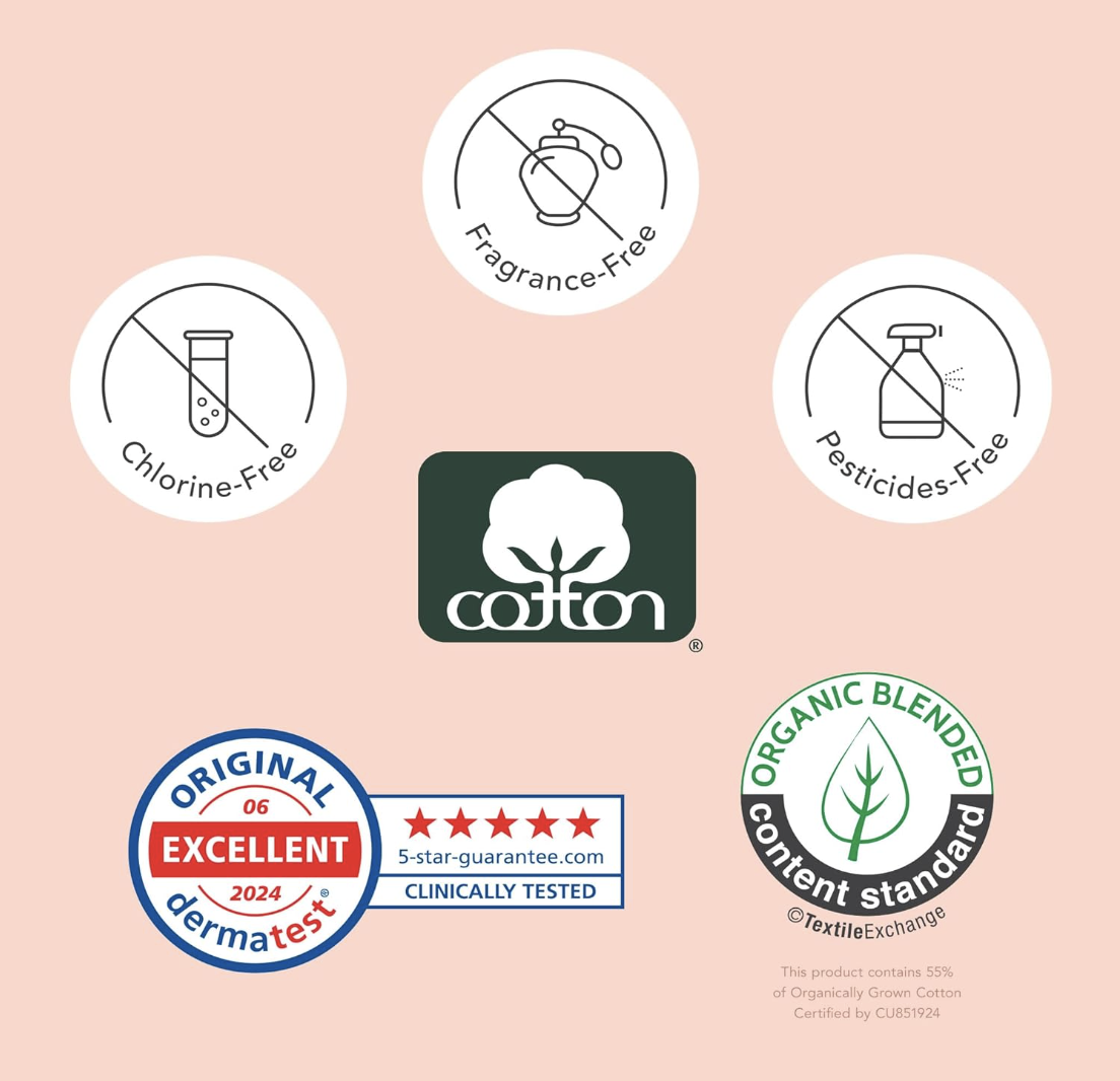 • 100% CERTIFIED ORGANIC COTTON COVER – Top layer is made with OCS certified cotton, grown without the use of toxins, chlorine, pesticides, and fragrance.